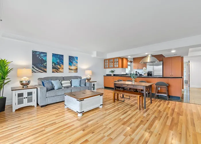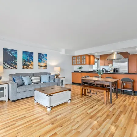 The 114 m² Honu Hale Waikiki 2Bdr Spacious Panoramic View Honolulu apartment is located a mere 1.1 km from the upscale beachfront Moana Surfrider Lodging and nearly a 25-minute walk from the Waikiki Aquarium. Situated just moments from the Ala Wai Canal, this apartment offers a terrace where guests can relax and enjoy the sea view.